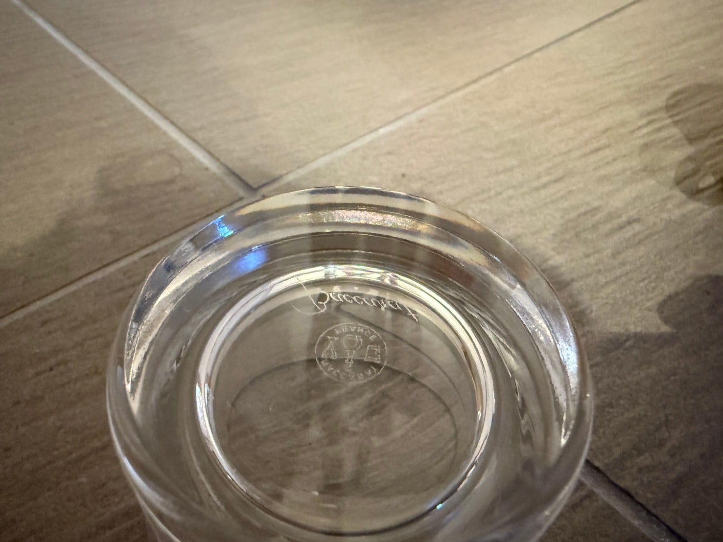 底部にブランドロゴとバカラのメダリオン刻印が施されており、透明度の高いクリスタルならではの輝きを楽しめます。