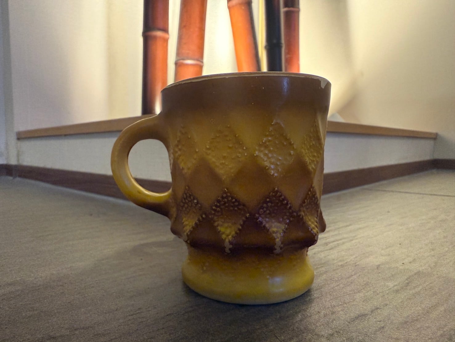 アメリカの老舗ガラスメーカー「アンカーホッキング社」が製造していた、ファイヤーキング(Fire-King)シリーズのヴィンテージマグカップです。