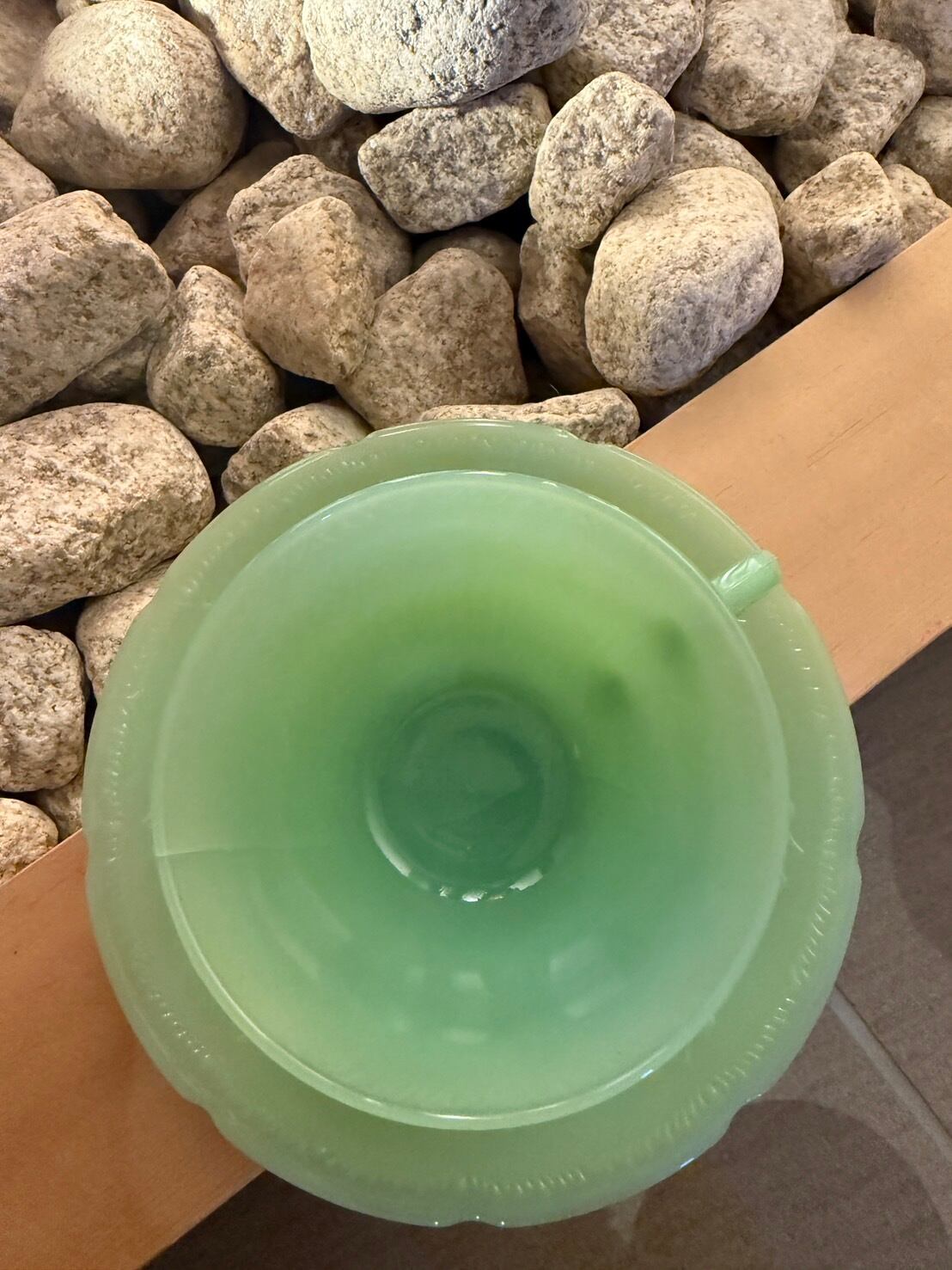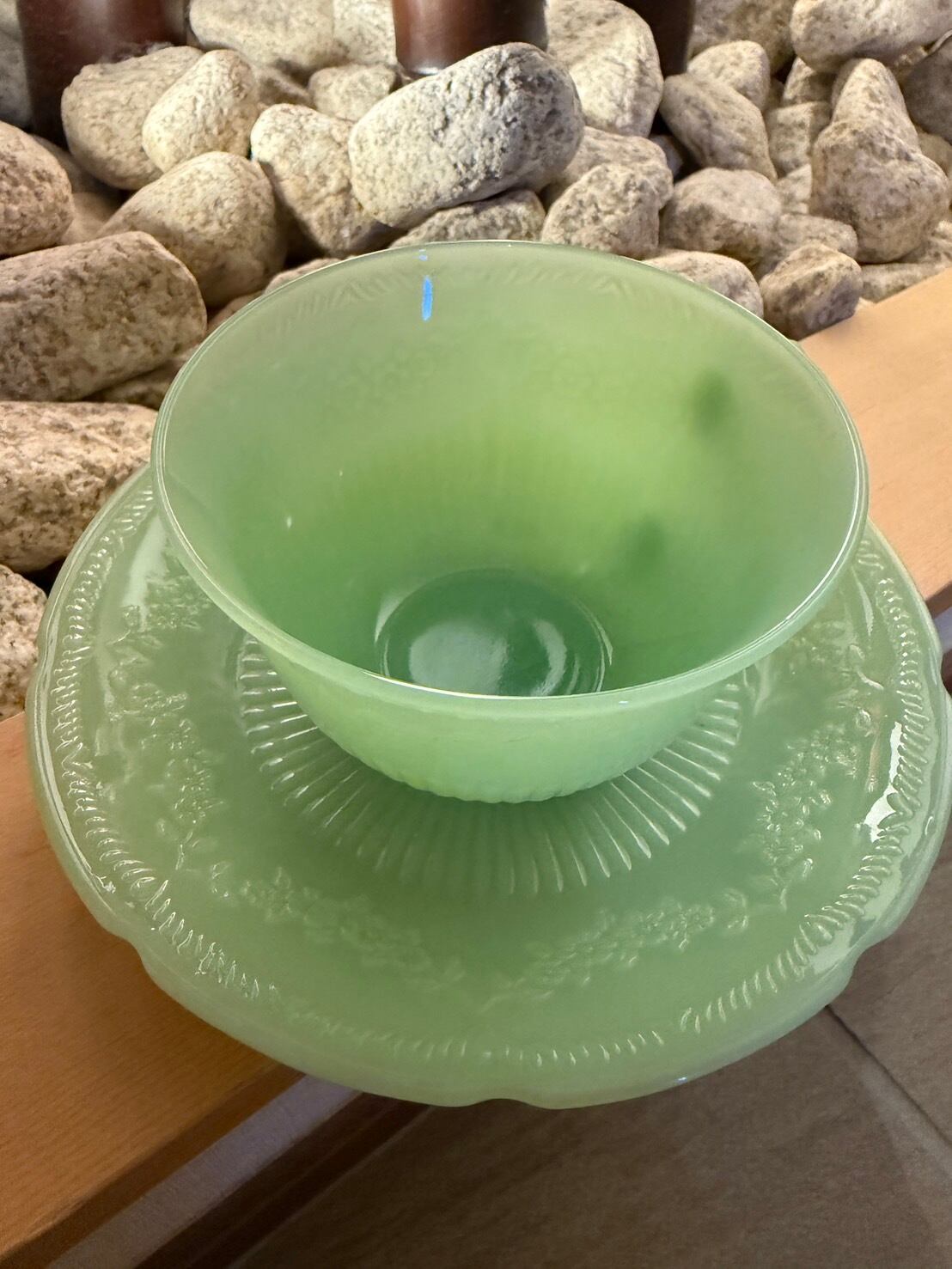 Fire-King(ファイヤーキング) ジェダイ グリーン カップ&ソーサー セット(ヒビあり)